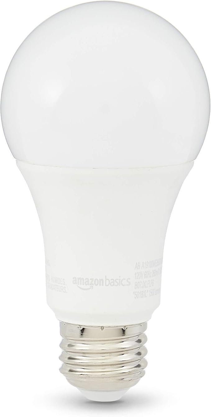 Amazon Basics A19 LED Light Bulbs 100 Watt Equivalent, Daylight White (5000K), Energy Efficient 15 W, Non-Dimmable, 10,000 Hour Lifetime, 16 count (Pack of 1)