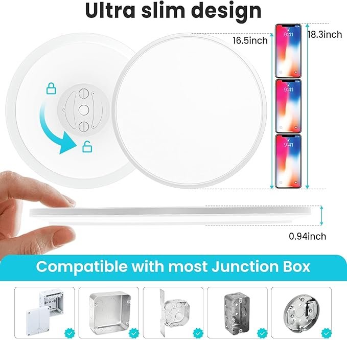 - Large Size: With a thin 16.5inch diameter and a thickness of just 0.94 inches, this bright led ceiling lamp is perfect for a wide range of spaces including livingroom,diningroom,kitchens, bedrooms, and more. Enjoy crisp lighting in a sleek design with libtit.